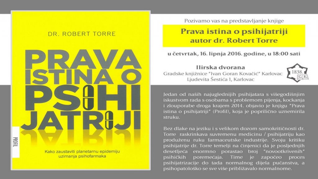 Nedavni feljton u dnevnim novinama, “Prava istina o psihijatriji” autora dr. Roberta Torrea, pozivom na otrežnjenje struke izazvao je nezapamćeni bijes psihijatara. Prije par dana iz tiska je izašla istoimena knjiga iz koje vam donosim tekst zadnje stranice, sekvence iz predgovora i nešto više – i toplo je preporučujem.